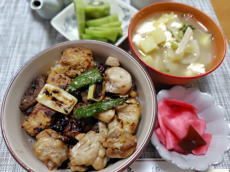 (鶏もも焼き・鶏もつ焼・鶏つくね焼き・鶏ももと椎茸のはさみ焼き・ネギ焼き・ピーマン)